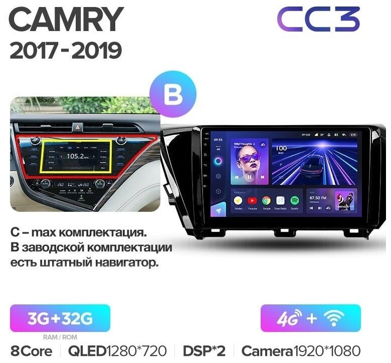 Штатная магнитола Teyes CC3 Toyota Camry 8 XV 70 2017-2020 4+64G, Вариант B