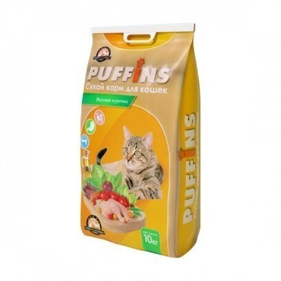 Корм для кошек сухой Puffins , полнорационный, Вкусная курочка 10 кг