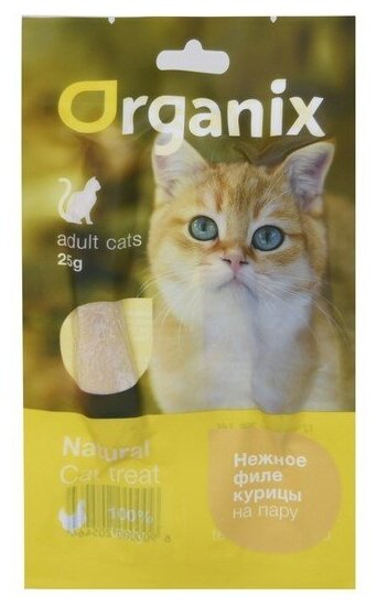 Organix Лакомство для кошек "Нежное филе курицы, приготовленное на пару", 25г 0.025 кг