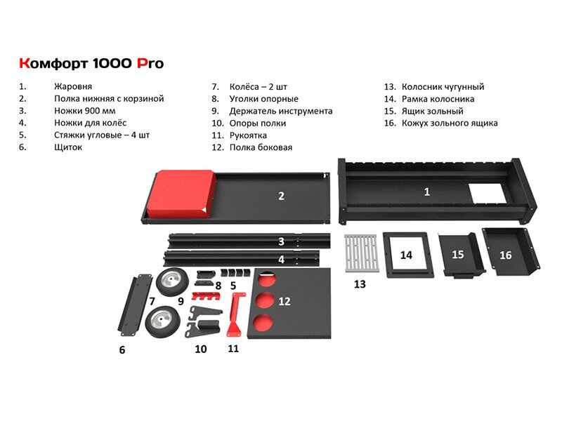 | Дополнительная информация | зона подготовки углей, чугунный колосник, зольный ящик, держатель инструментов |