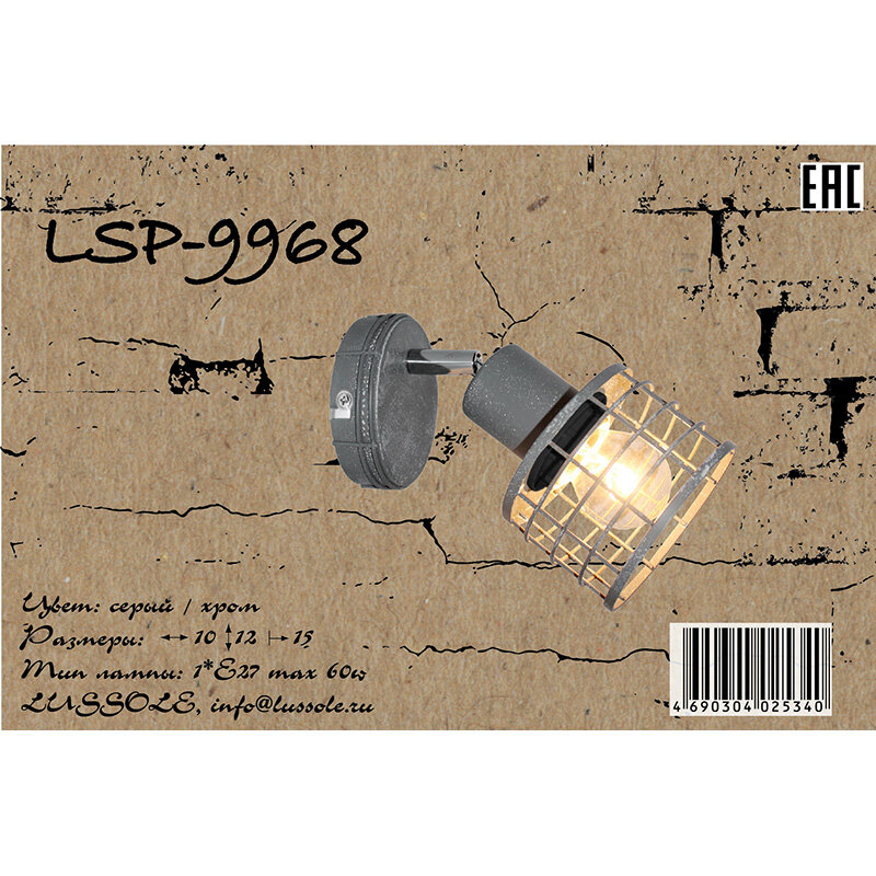 Светильник спот Lussole LOFT Greeley LSP-9968, Серый, E27