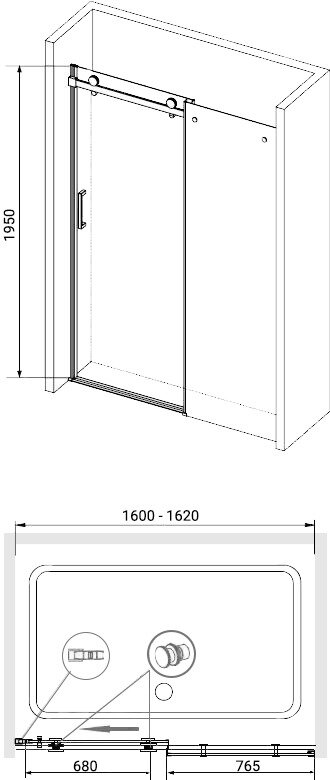 Душевая дверь RGW TO-14 02071416-11 раздвижная 160х195. Размер регулировки 1600-1620 мм.