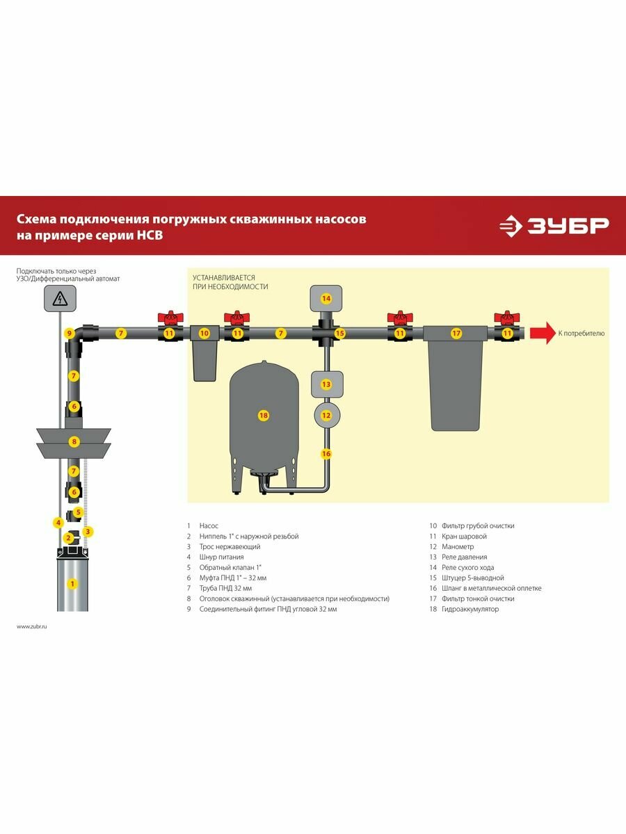 Скважинный насос центробежный ЗУБР, 60 м напор