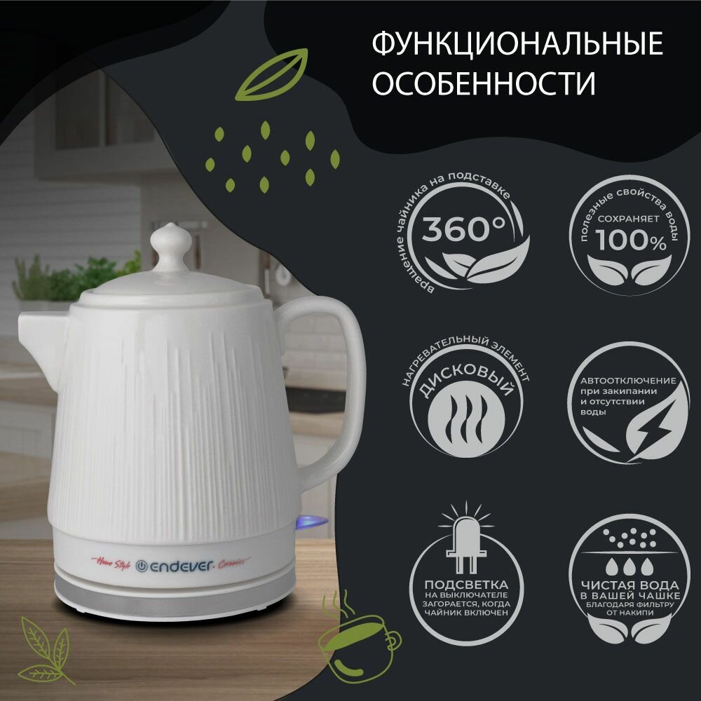 Чайник электрический керамический Endever KR-440C/450C / 1,4л / 1200 Вт интересное: