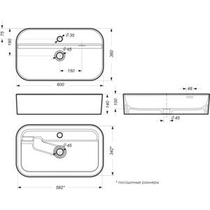 | Дополнительная информация | Комплектация: умывальник, кольцо перелива |