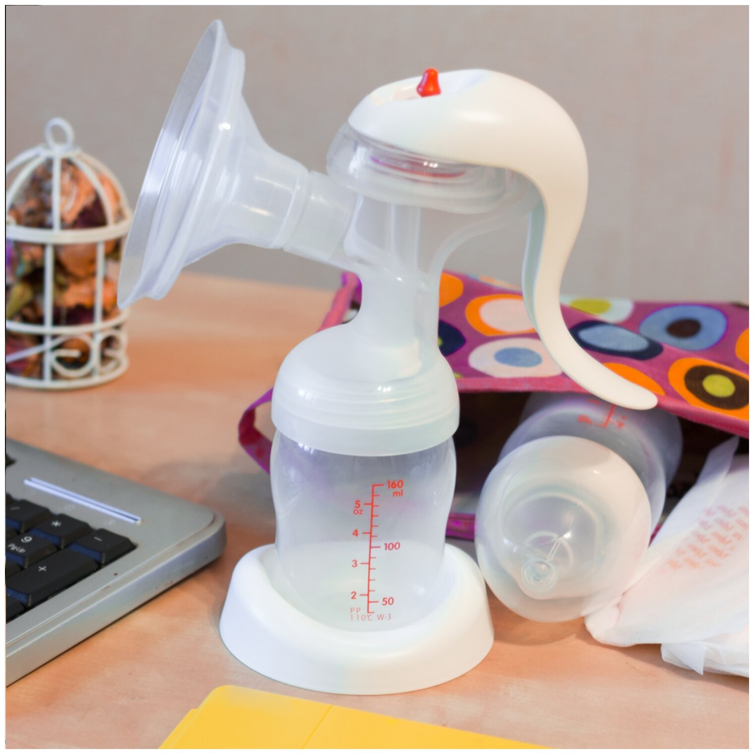 Молокоотсос ручной механический с бутылочкой для кормления ШГ и соской, 150 мл., цвет белый
