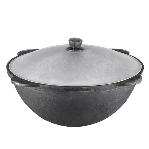 Казан Узбекский чугунный 6 литров (круглое дно) с алюминиевой крышкой