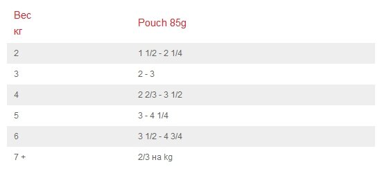 | Дозировка | монодиета, не требует дополнений. 2 2/3 - 3 1/2 пауча в день для кошки 4 кг. Суточная норма кормления указана на упаковке и дожна быть рассчитана в соответствии с размером животного для поддержания оптимального веса. Перед применением проконсультируйтесь с ветеринарным специалистом. |