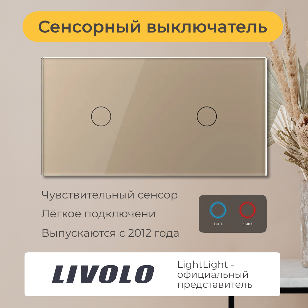 VL-C701/C701-13 Сенсорный выключатель Livolo 2 клавиши (1-1), 2 поста Золотой