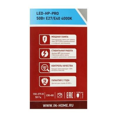 Лампа светодиодная IN HOME LED-HP-PRO, Е27/Е40, 50 Вт, 230 В, 4000 К, 4750 Лм