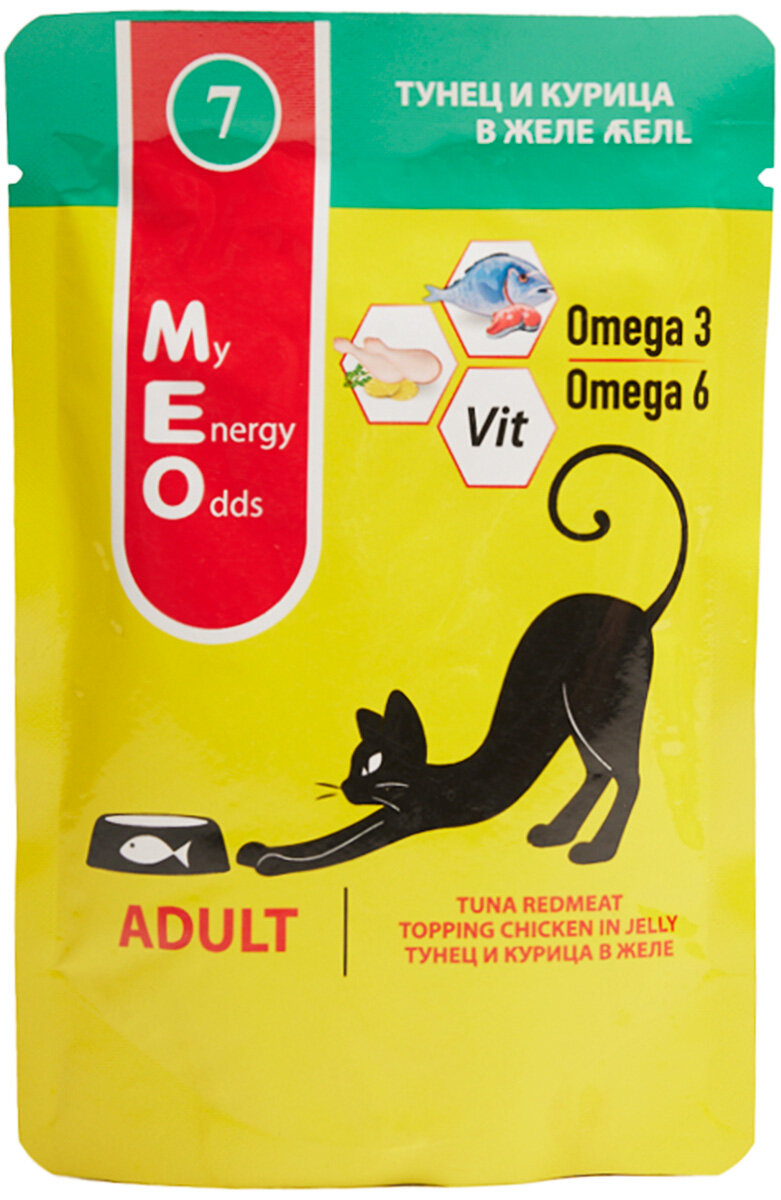 Влажный корм для взрослых кошек Me-O Adult №7 Тунец и Курица в желе паучи 80г х 12 шт.