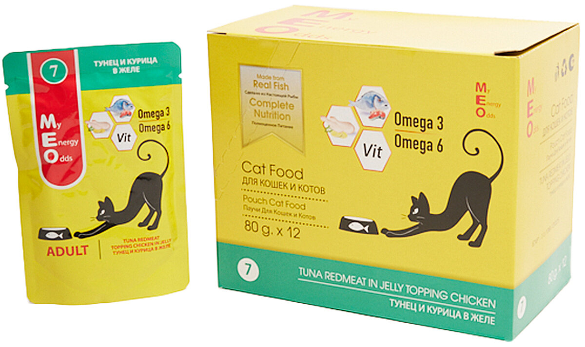 Консервы ME-O ADULT №7 для взрослых кошек с тунцом и курицей в желе (80 гр х 12 шт) интересное: