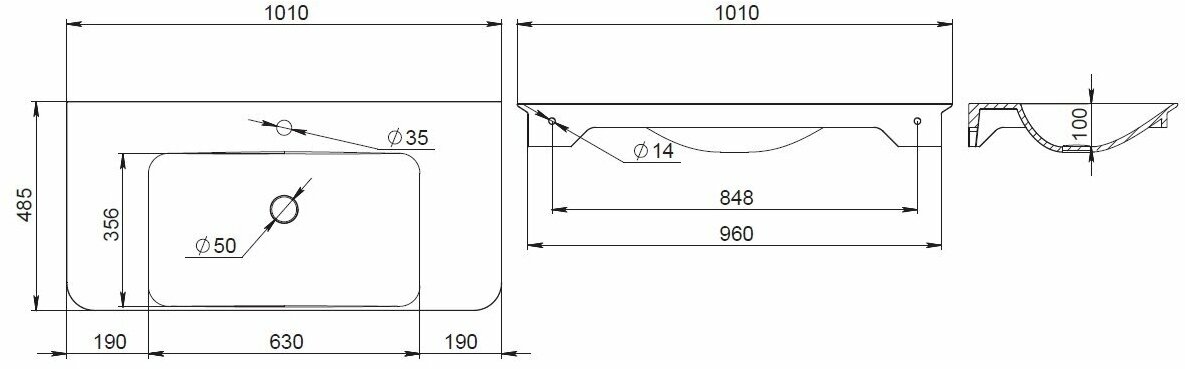 Раковина мебельная белая 100x48x10см Am.pm Sensation M30WPC1001WG