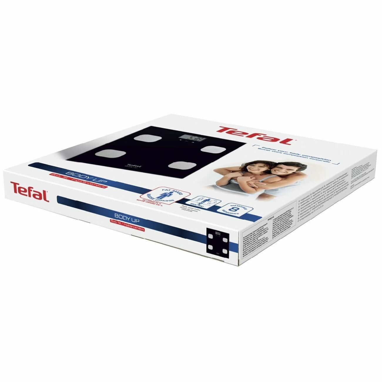 Напольные весы Tefal Body Up BM2521V0, черный, максимальный вес 150 кг, цифровой дисплей, автовключение, до 8 пользователей, весы отображают вес, процент жировой массы и индекс массы тела