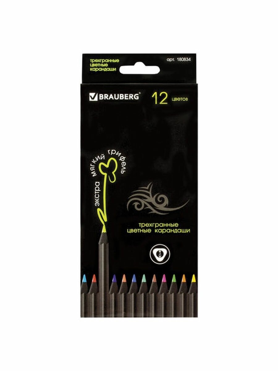 СохранитьКарандаши цветные BRAUBERG "Black Jack", 12 цв., трехгранные, черное дерево, заточенные, картонная упаковка, 180834 интересное: