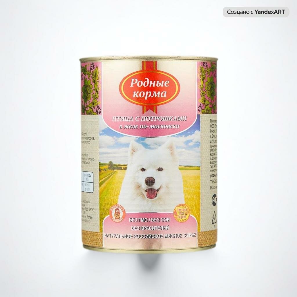 Влажный корм родные корма консервы для собак Птица с Потрошками в Желе-По Московски 970 гр