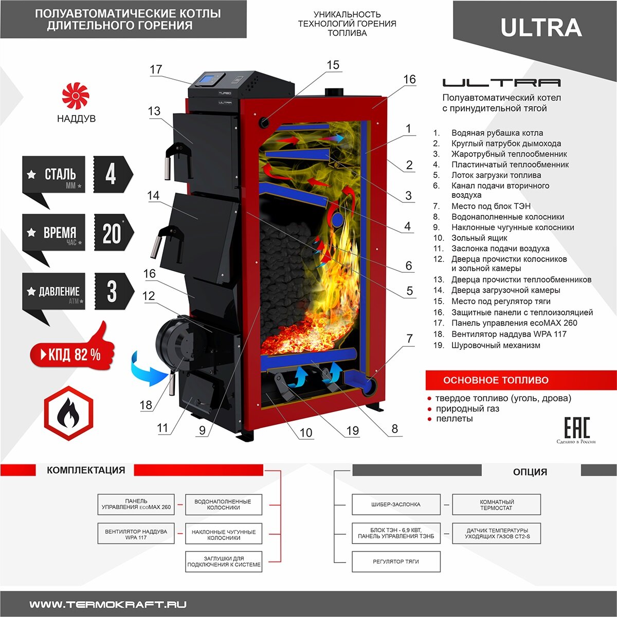 Котел длительного горения Термокрафт Ultra 45 интересное: