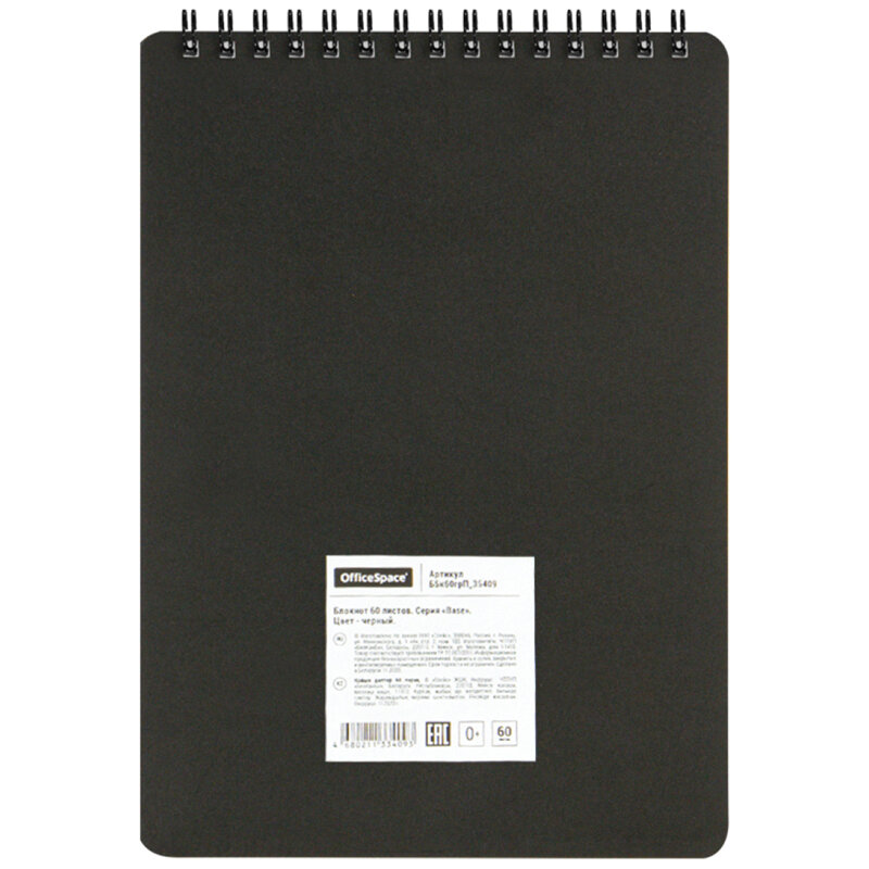 Блокнот А5 60л. на гребне "Base. Черный" ("OfficeSpace", Б5к60грП_35409) пластиковая обложка (1шт)
