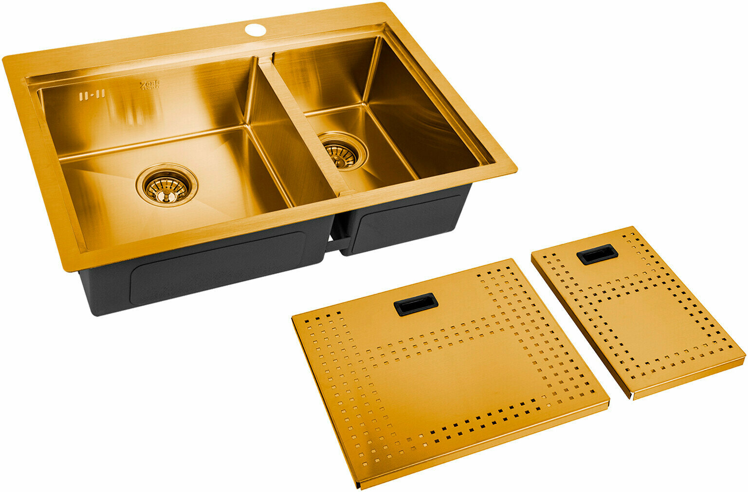 Мойка кухонная 78 см ZORG MASTER (ZM N-78-2-52-L BRONZE), с накладкой, бронза
