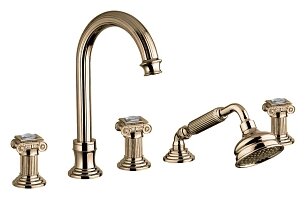 Смеситель на борт ванны с выдвижным душем и переключателем бронза, ручки swarovski Cezares Olimp OLIMP-BVD-02-Sw