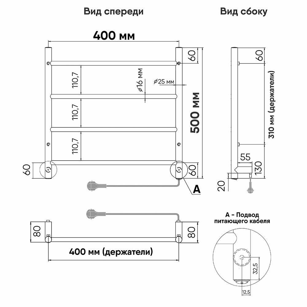 Полотенцесушитель Электрический Тругор Пэк сп 5 П 60х50 черный ВГП