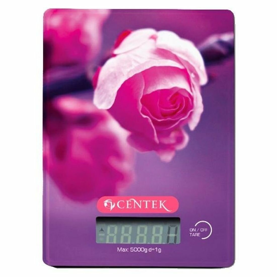 Весы кухонные Centek CT-2459 (Роза) стеклянные, электронные, max 5кг, шаг 1г, шелкография, LCD