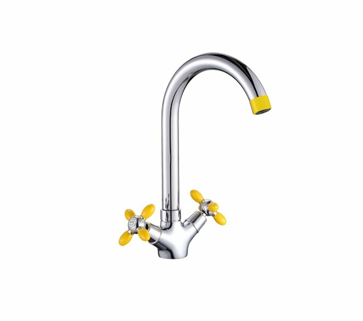 Смеситель д/кухни с высоким изливом, цветные ручки, аэратор - желтый, хром, Potato (Китай), арт P4471-10
