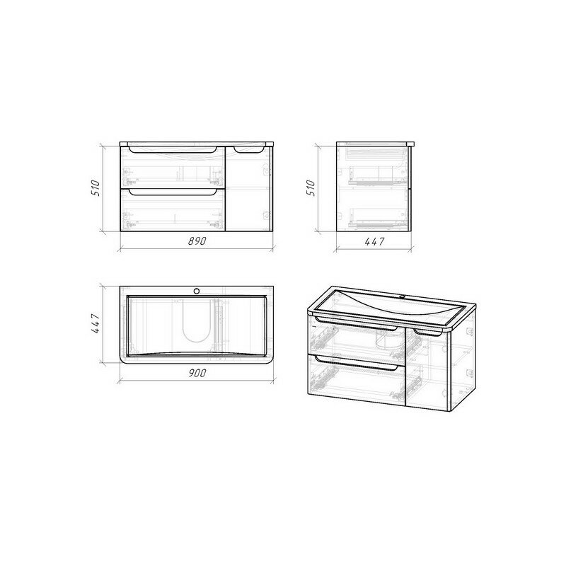 Тумба под раковину Grossman АДЕЛЬ-90 с 2-я ящ. белая