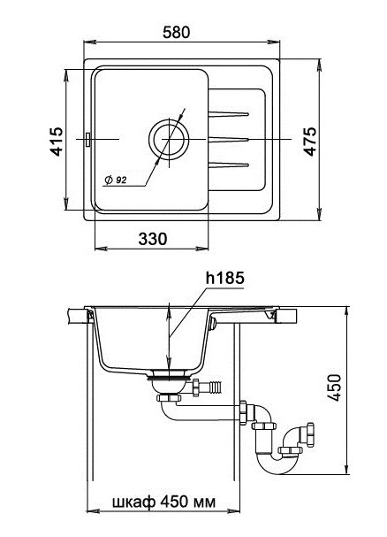 | Ширина мойки | 58 см |