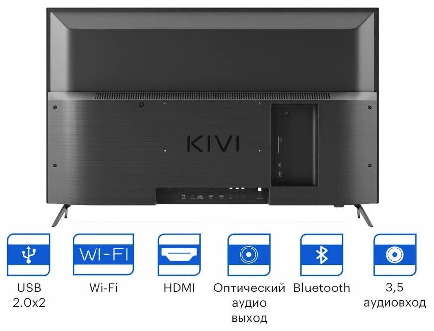 Телевизор 43" Kivi 43U750NB черный 3840x2160 60 Гц Wi-Fi Smart TV 4 х HDMI 2 х USB RJ-45 CI+ Bluetooth интересное: