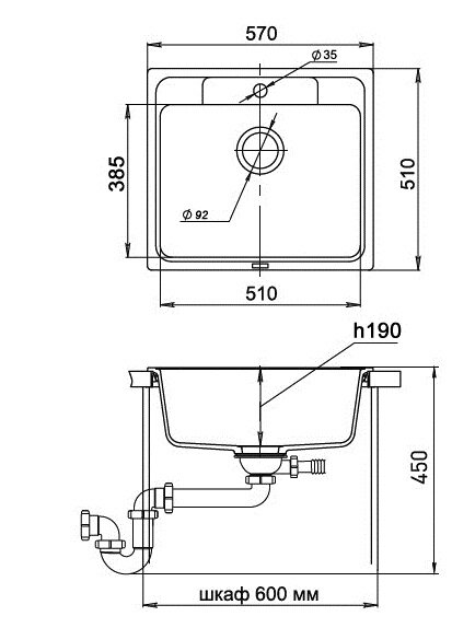 | Ширина мойки | 57 см |