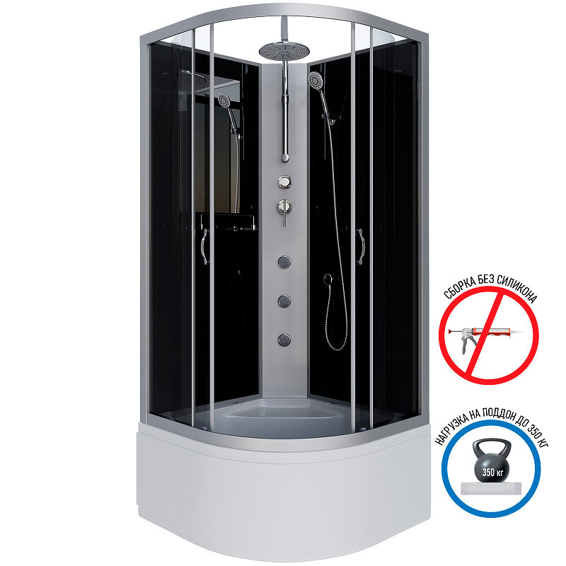 Душевая кабина NG-2507-14BKTG (800х800х2100-2400) высокий поддон(40см) стекло тонированное