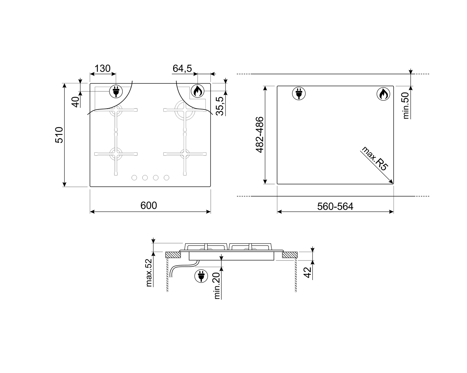 Варочная панель газовая Smeg PXL675L интересное: