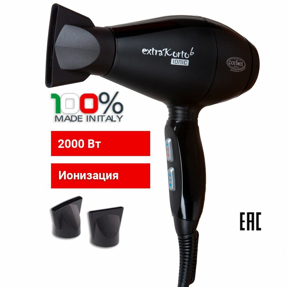 COIF*IN, Фен, Extra Korto черный, 2000W, EK6К IONIC