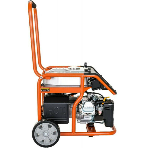 Собирается элементарно: два колеса, крепятся шпильками + упор на двух болтах. Запуск: налил масло (полусинтетика Лукойл, купил на заправке), немного бензина, открыл краник на топливопроводе, подсос - один рывок стартера - все заработало. Надеюсь, что послужит долго в качестве резервного источника питания на даче... |