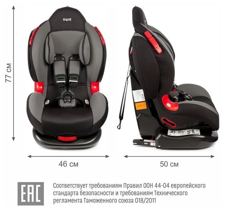 SIGER KRES0140 Кресло автомобильное детское, группа 1, 2, 3 (от9 до 36кг) изофикс