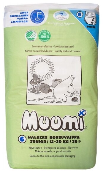 MUUMI BABY WALKERS Эко Подгузники трусики органические, натуральные, биоразлагаемые, детские №6 12-20 кг, 36 шт интересное: