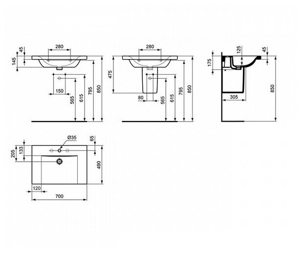 Ideal Standard E812801 CONNECT Vanity Умывальник 70х49 см, белый интересное: