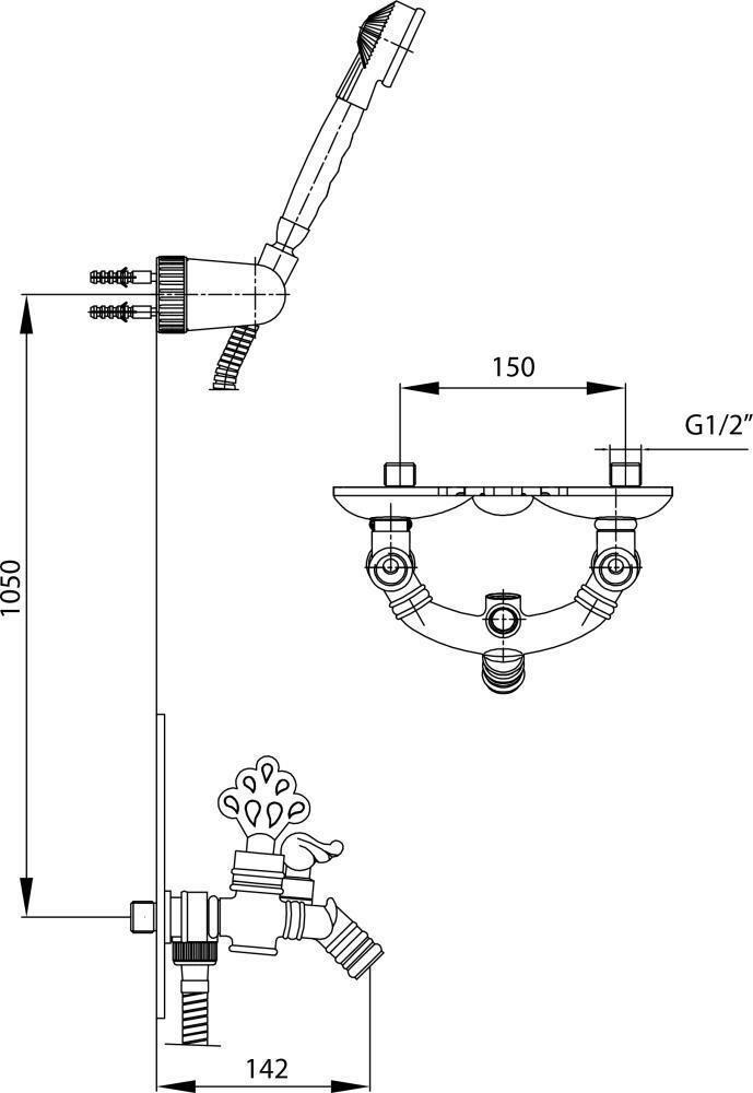 Смеситель E.C.A. Ottaman 102202001EX для ванны с душевым гарнитуром