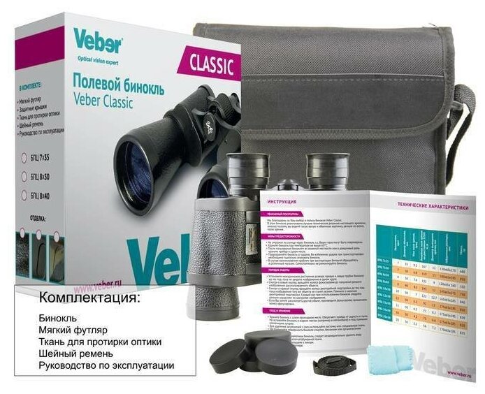 Бинокль Veber Classic БПЦ 8x30 VL черный, кожа интересное: