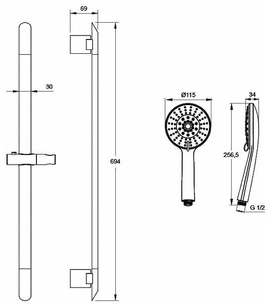 | Дополнительная информация | высота стойки для душа: 694 мм; диаметр душевой лейки: 115 мм |