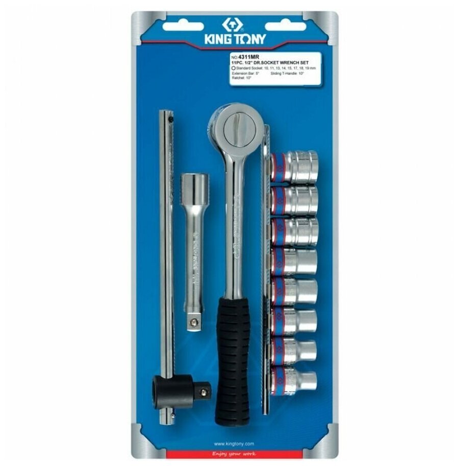 Купить 4311MR KING TONY Набор торцевых головок 1/2", шестигранные, 10-19 мм, 11 предметов