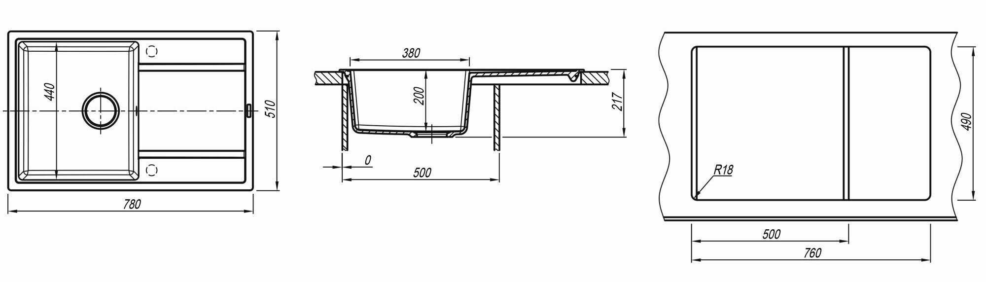 Кухонная мойка Florentina ЛИПСИ-780 Черный Искусственный камень
