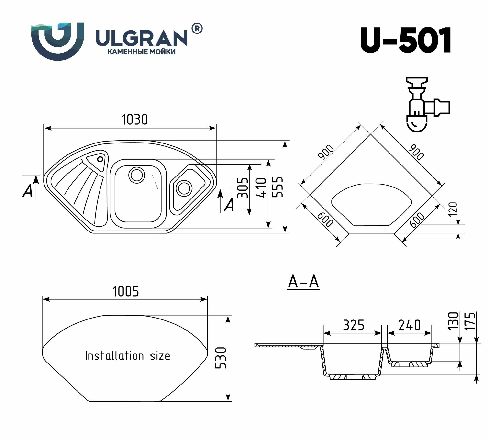 Мойка для кухни Ulgran U-501 (-341, ультра-белый)