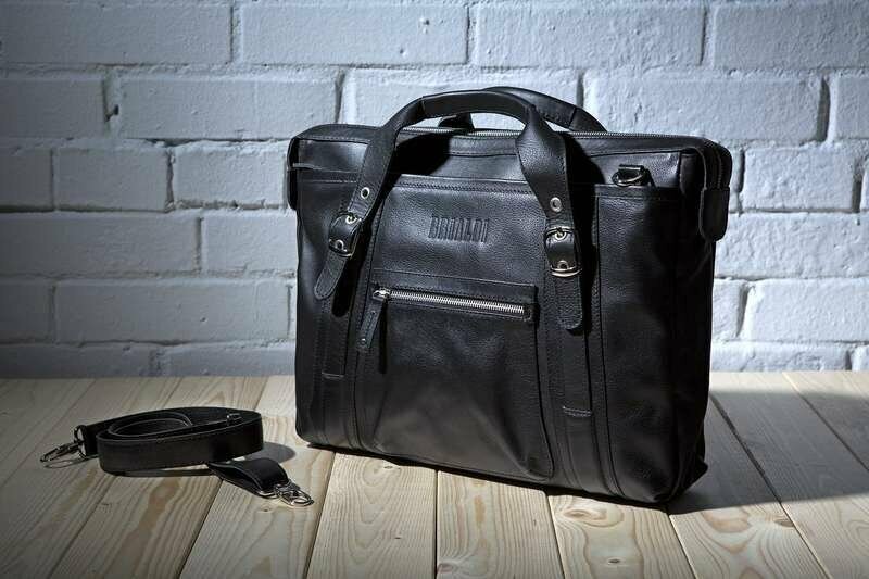 Сумка мужская деловая Brialdi Navara black (черная) для формата A4 или ноутбука 15,6 дюймов из натуральной кожи