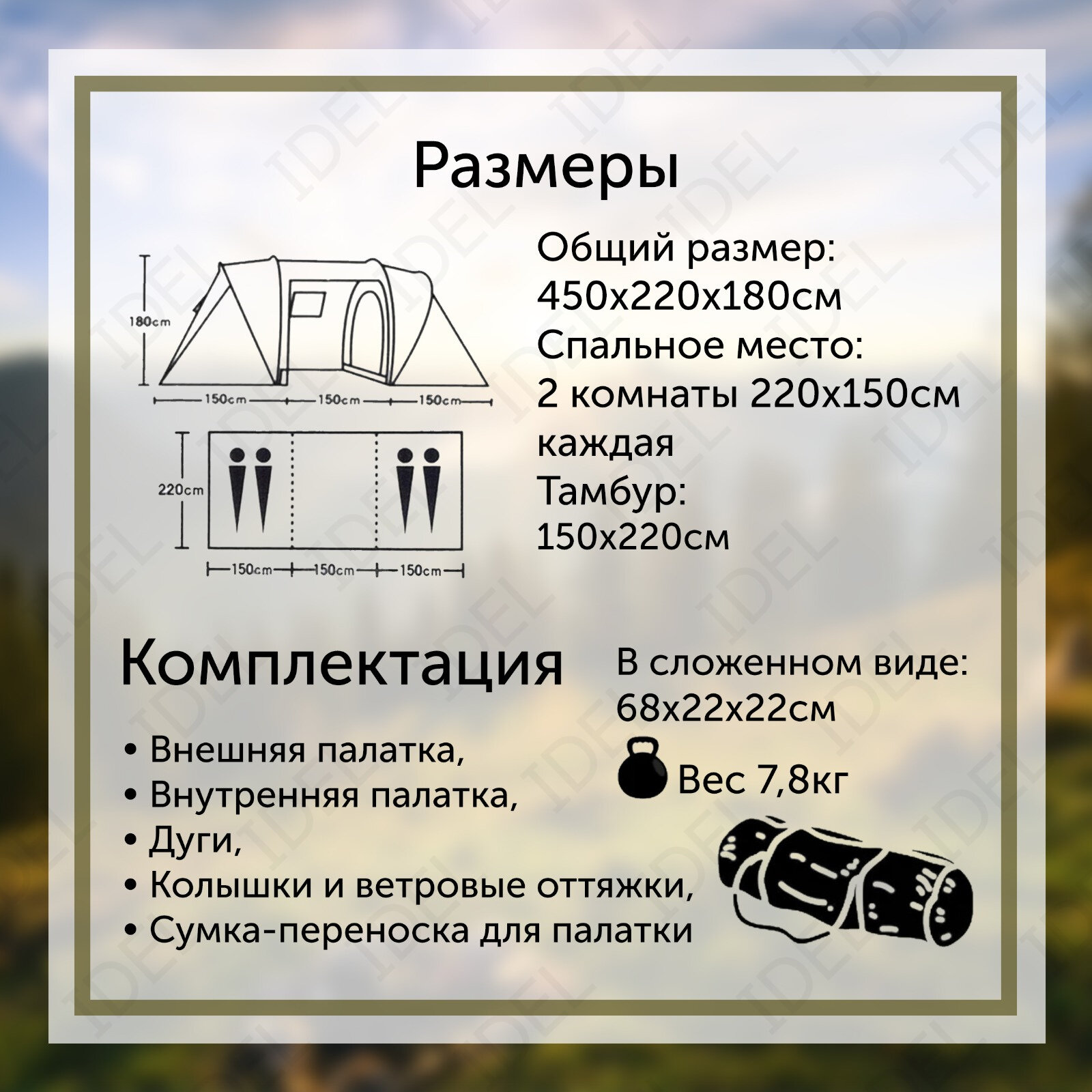 | Длина внешней палатки | 450 см |
