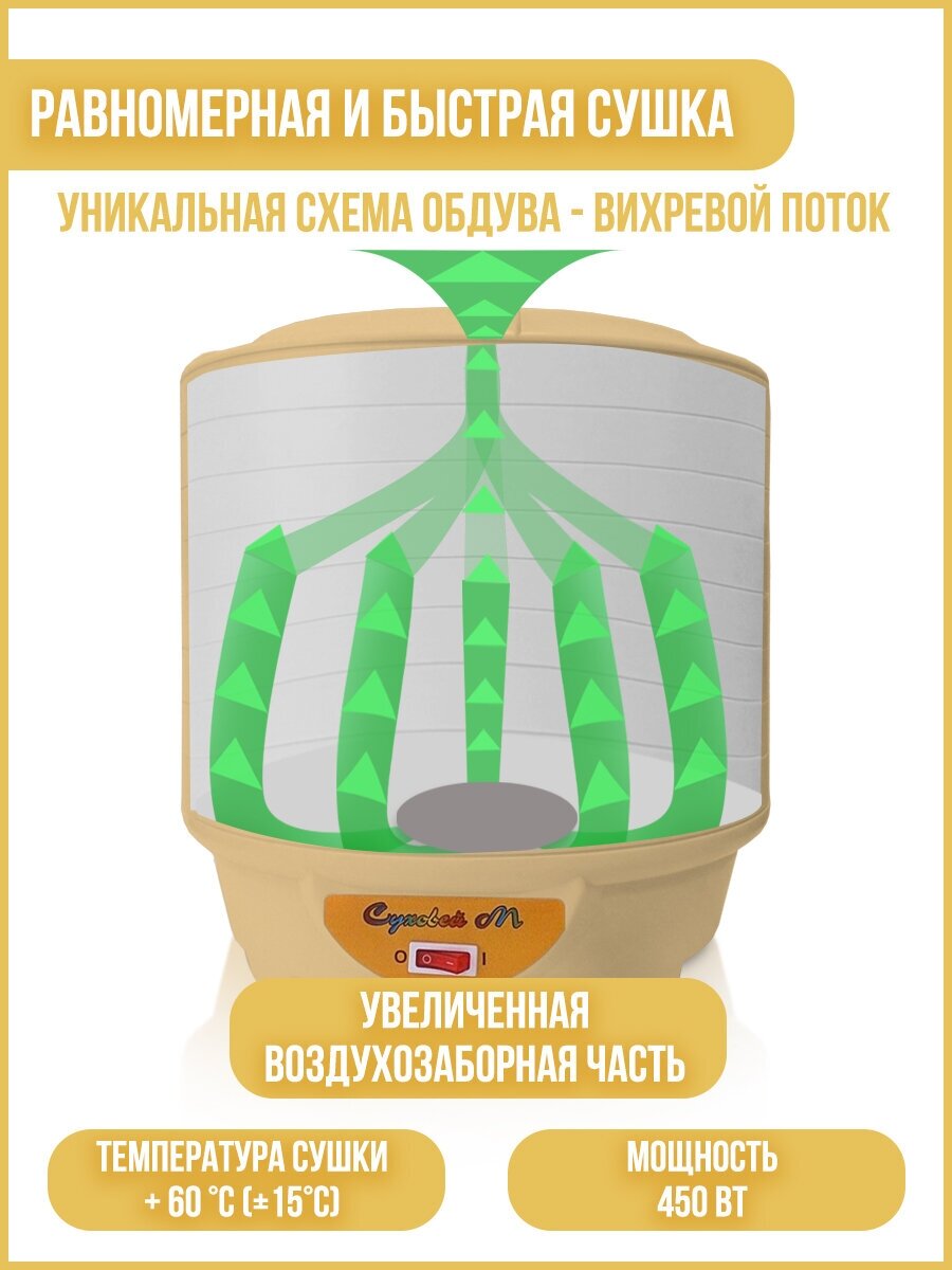 СохранитьСушилка для овощей/ Сушилка для фруктов / Дегидратор для фруктов и овощей "Суховей М", 8 подносов интересное: