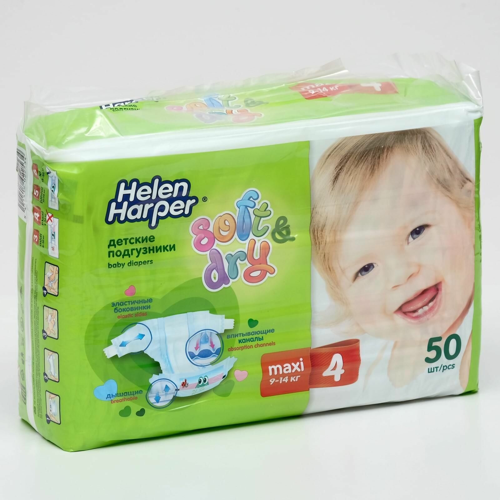 Подгузники Helen Harper Soft&Dry, Maxi 4 (9-14 кг), 50 шт 1128629
