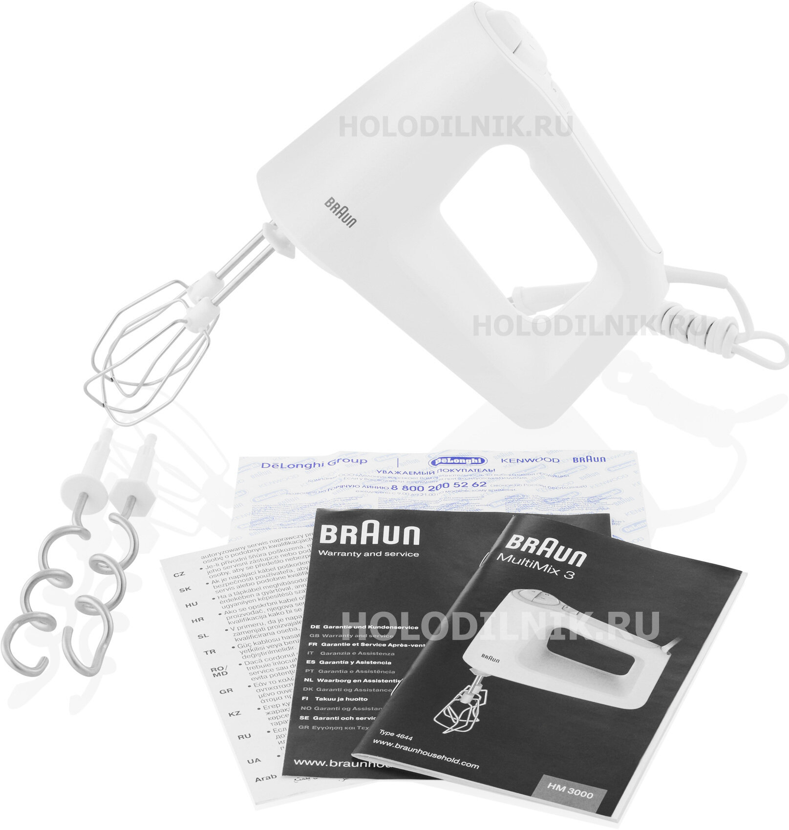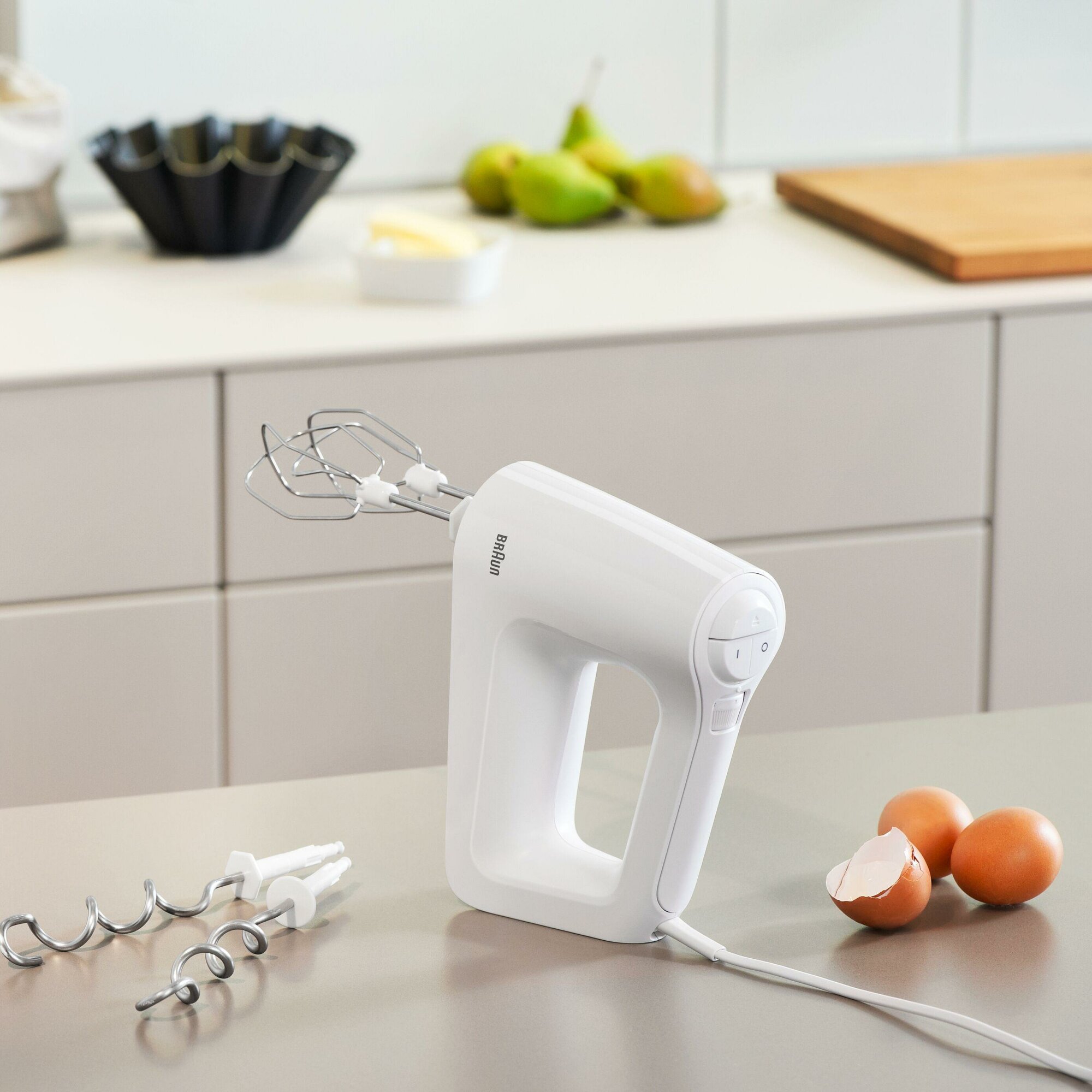 Ручной миксер Braun MultiMix 3 HM 3000 - ручной миксер с 5 уровнями скорости и функцией турбо, включая венчик и крюк для теста, 450 Вт, белый