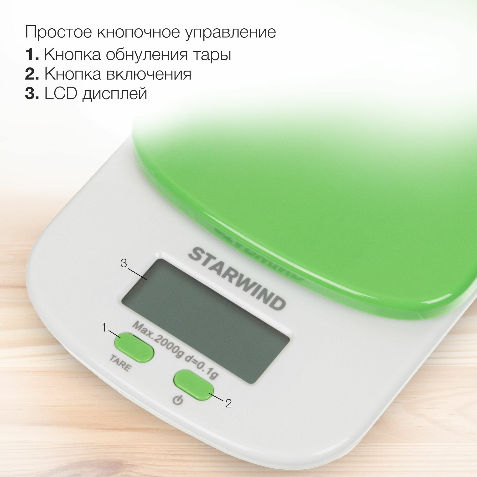 Купить Весы кухонные электронные Starwind SSK2155 макс.вес:2кг зеленый